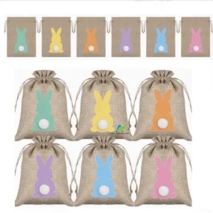 Easter Cute Bunny Imitation Linen Cloth Drawstring Gift Bag