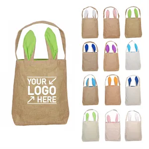 Reusable Easter Egg Bunny Jute Basket Gift Bag Shopping Tote